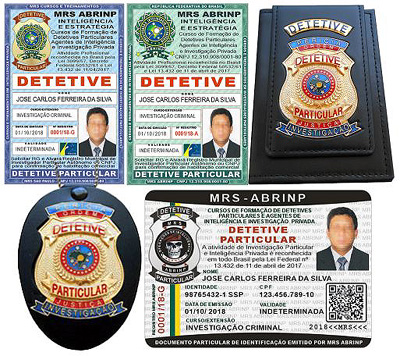 Conteúdo: Apostila + Certificado + 3 Carteiras Impressas como AGENTE DE INVESTIGAÇÃO PARTICULAR + Porta Funcional Básico